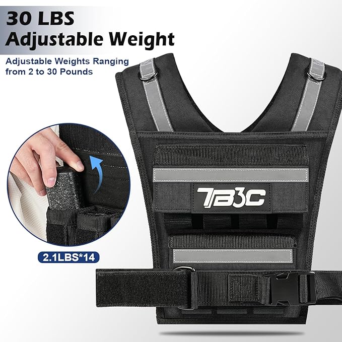 - Adjustable Weight: The TB3C adjustable weight vest is available in three weights, each with removable weight blocks,19lbs (8 weights), 30lbs (14 weights) and 40lbs (18 weights), allowing you to adjust the weight to suit your level of training and goals.