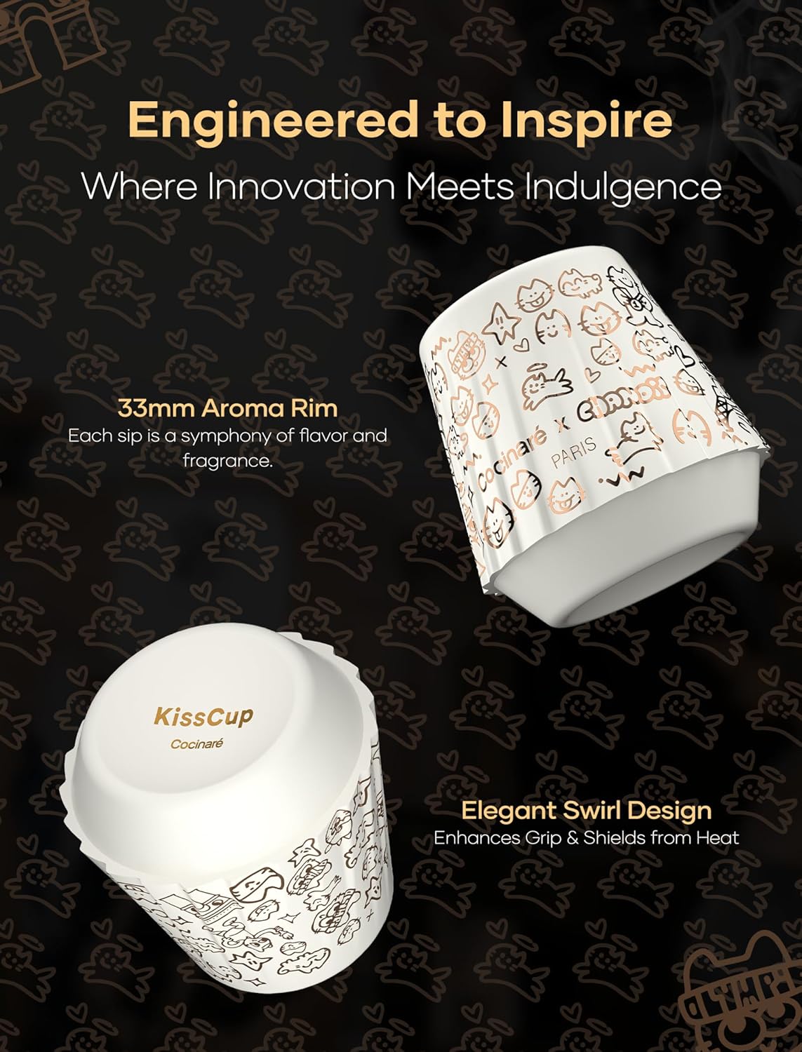 Cocinare x Chanoir KissCup Art Ceramic Espresso Cup – 2.2oz Demitasse Cup for Espresso, Pour-over coffee and Tea, Chanoir White, Art de Paris Collaboration