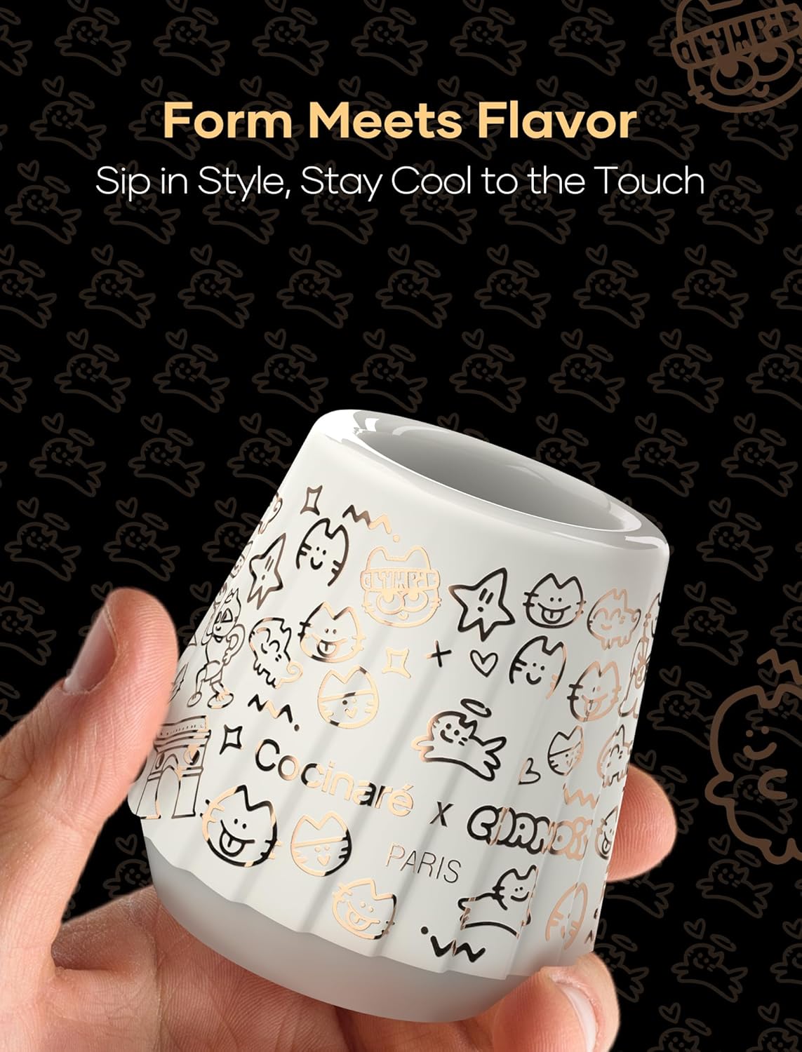 - Chanoir Art de Paris Collaboration Edition: This limited-edition ceramic cup showcases Parisian artist Chanoir’s playful cat motifs, merging street art with serene design.