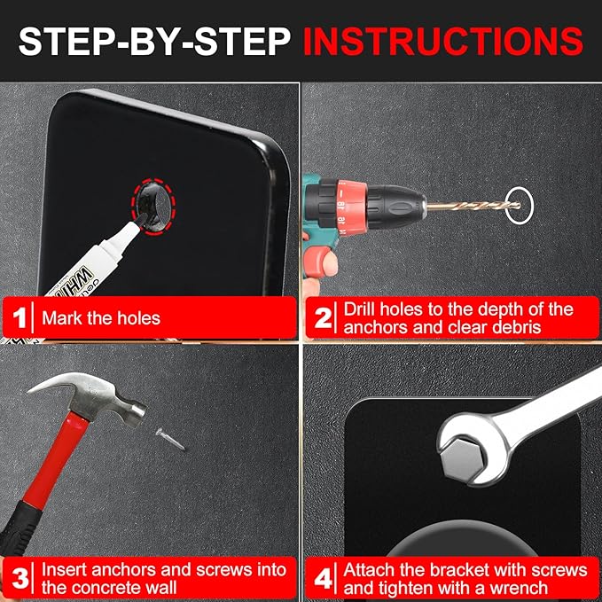 - Weight Plate Storage Rack for Home Gym - Wall-Mounted Bumper Plate Holder with Heavy Duty Steel · High Capacity Storage: Designed to hold multiple weight plates securely, perfect for organizing your home gym. · Tilted Plate Holder: Slight 2° tilt prevents plates from sliding off, keeping them safely stored. · Durable & Scratch-Resistant: High-quality steel with a protective hard-coat finish. · Universal Fit: Fits all 2" Olympic weight plates, with included installation hardware for both wood and concrete walls. · Impact Protection: Foam padding reduces wear and tear on plates and the rack.