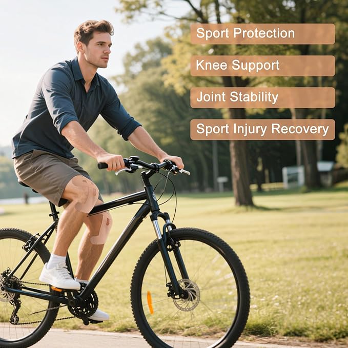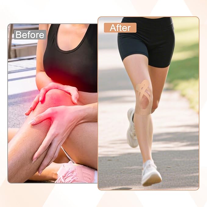 - Easy to use: Knee tape is uniquely pre-cut and customized to the contours of the knee joint. Each piece of kinesiology tape knees is equipped with a partitioned peel-off backing paper for quick and precise attachment, and professional-grade support can be obtained without cutting