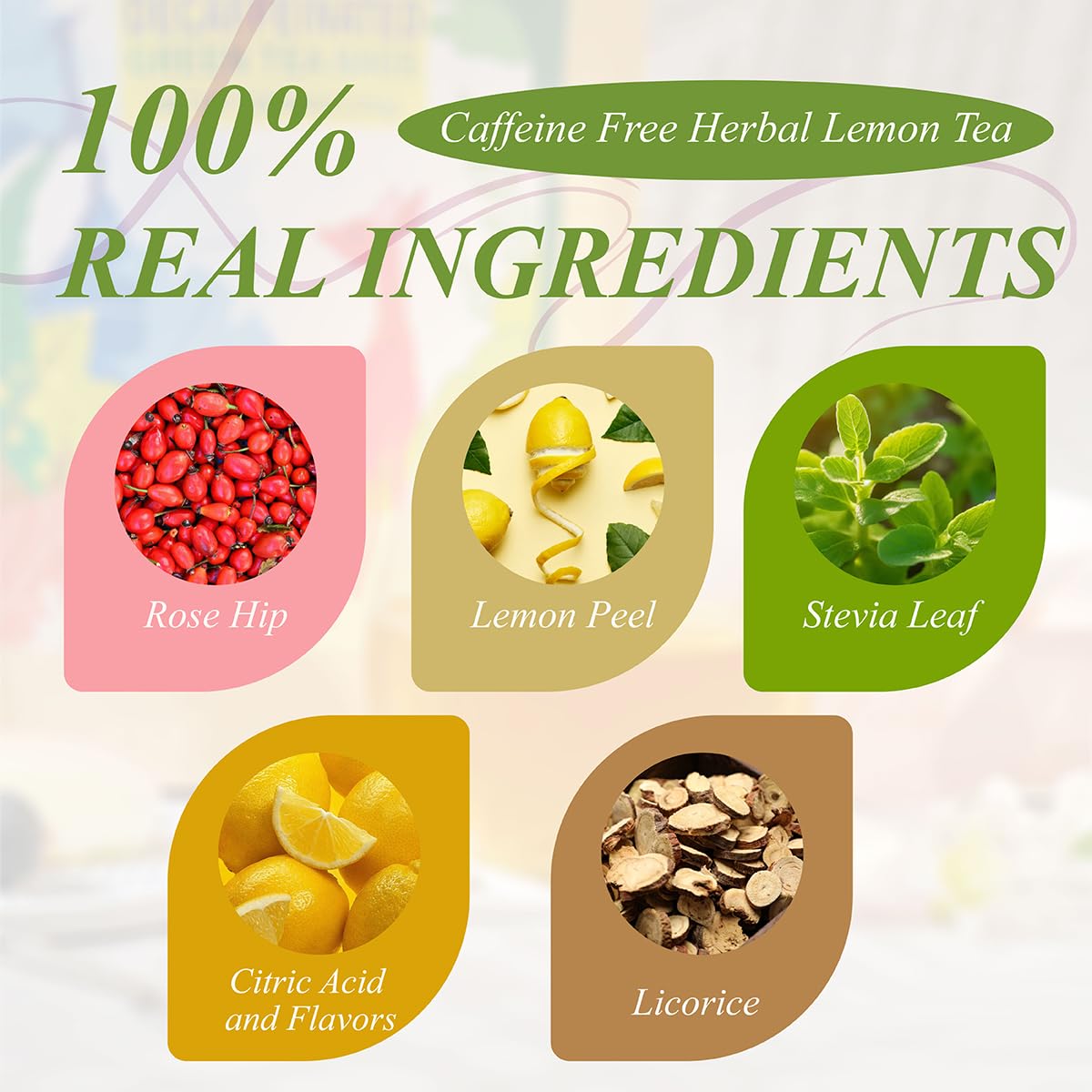 - 【Real Lemon Herbal Tea】Lemon tea bags are made from premium, natural Rose Hip, Lemon Peel, Stevia Leaf, Citric Acid, Natural Lemon Flavor, Licorice, this refreshing tea is perfect for all seasons