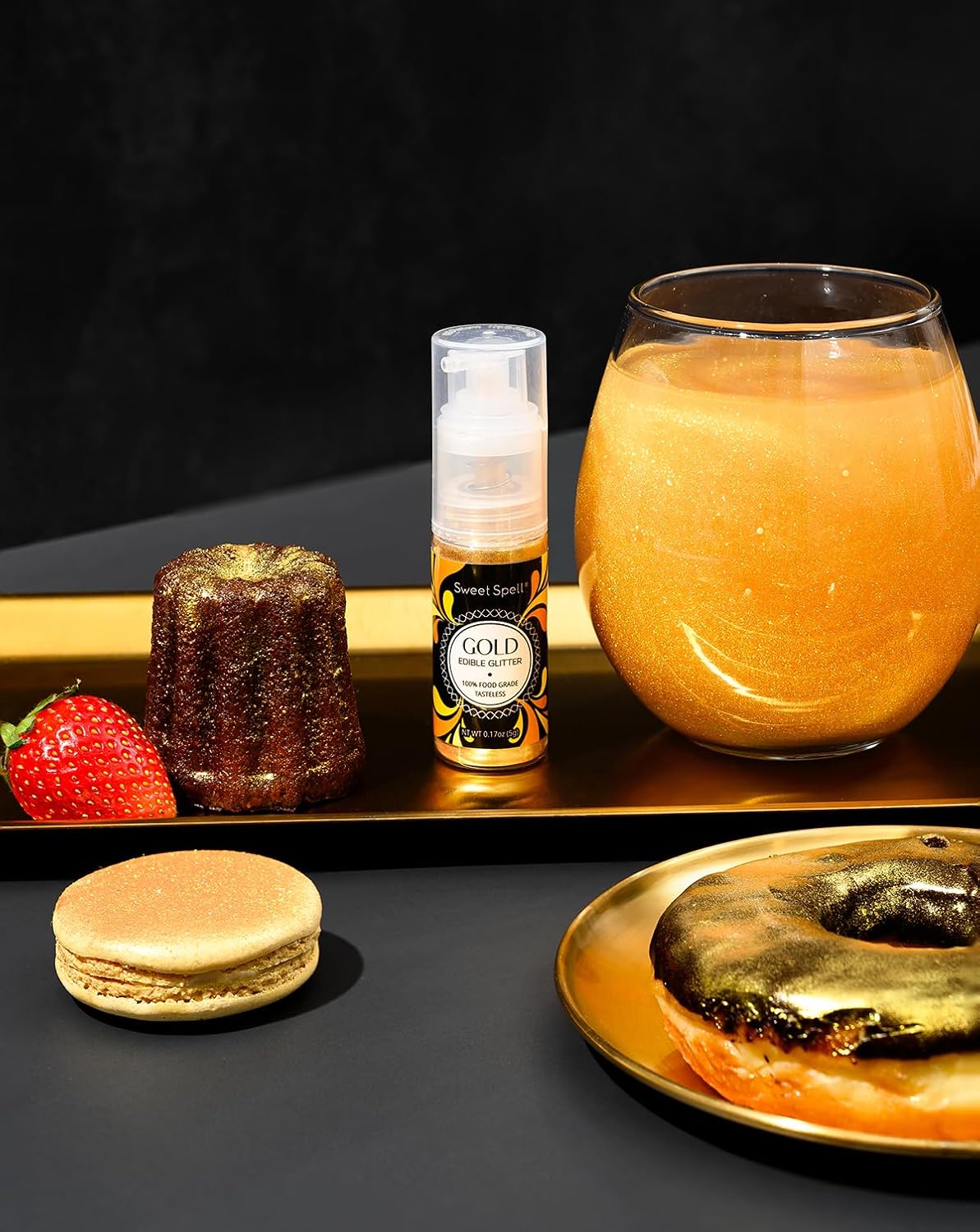 Sweet Spell Edible Cake Glitter Spray – Shimmering Magic for Cakes Decorating & Cocktails – 100% Edible, Food-Grade, Vegan, Gluten-Free (Gold)