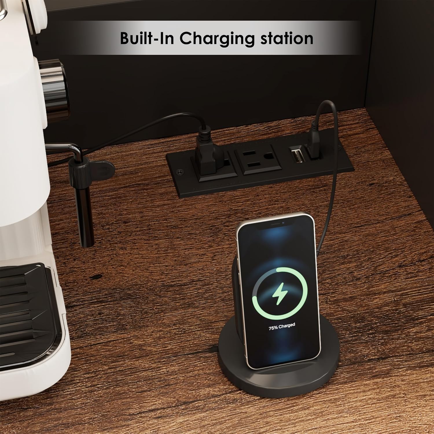 - SPACIOUS COUNTERTOP WITH CHARGING STATION: This kitchen pantry cabinet boasts a 47.2"W x 20.3"H countertop, providing ample space for all your essentials. Designed with convenience in mind, it includes 2 AC power outlets and 2 USB ports, making it easy to power and charge appliances such as coffee makers, ice makers, microwaves, toasters, and more. Whether you're preparing your morning brew or hosting a gathering, this cabinet meets all your needs. Sit back, sip, and savor the moment