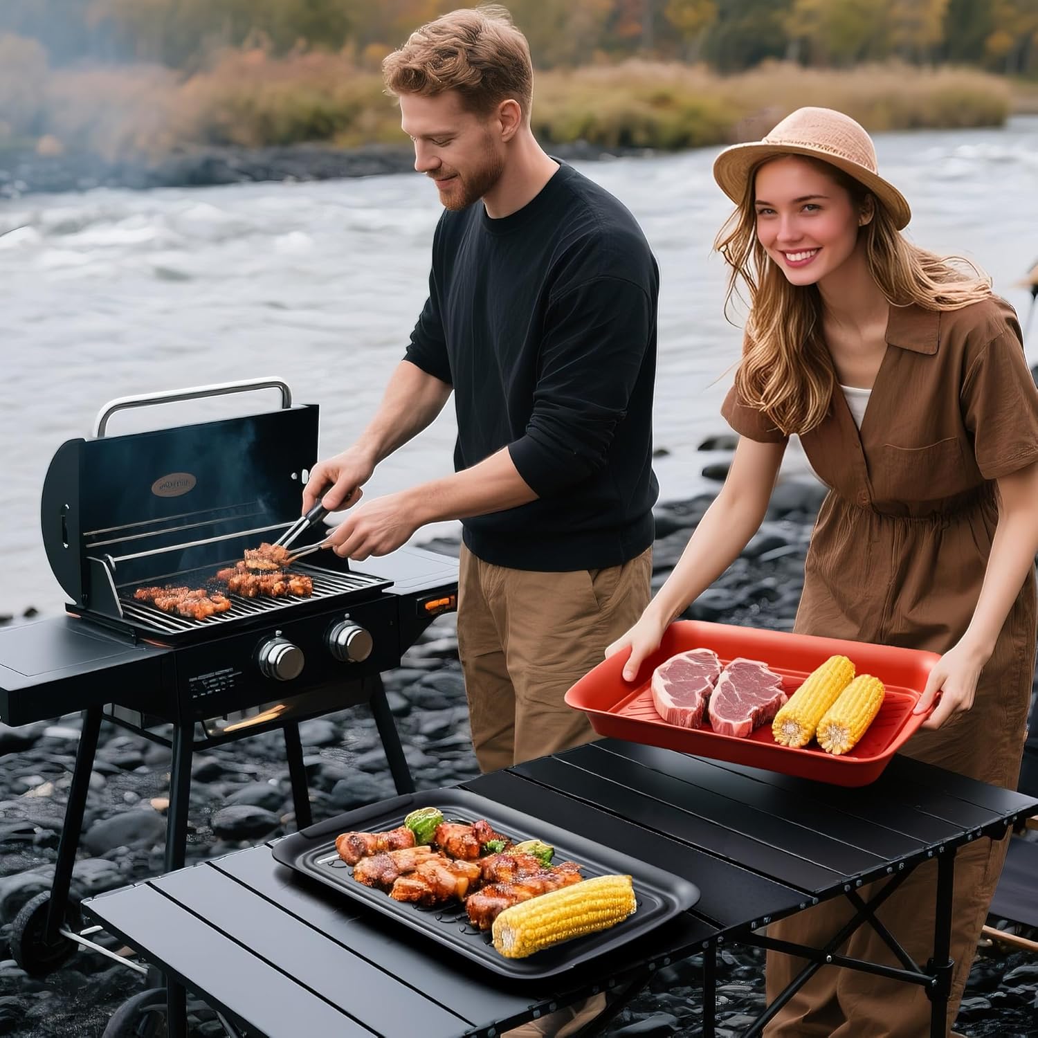 - Two-Tray BBQ Set: Includes one deep prep tray for marinating and holding raw meats, and one shallow serving tray for presenting grilled foods cleanly, keeping prep and presentation separate.
