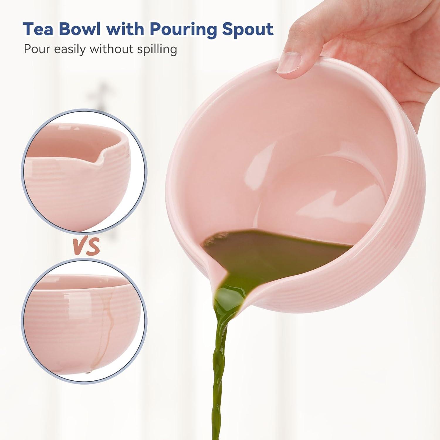 - Tea Bowl with Pouring Spout: The lead-free ceramic matcha bowl (520ml/18.3oz) is designed with a pouring spout that prevents tea spilling and lets you better share matcha with your family and friends (We also equip you with a 9.05" x 12.9" waterproof tea mat so you can keep your table clean while making matcha drink)