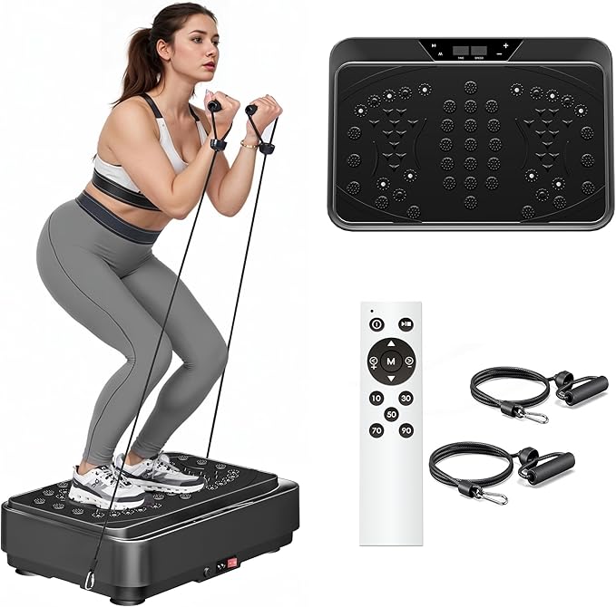 soges Vibration Plate Exercise Machine with Resistance Bands, Vibrating Plate for Lymphatic Drainage, Whole Body Vibrate Equipment, Home Fitness Workout Weight Loss Sports
