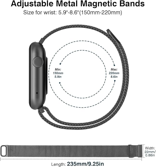 22mm Magnetic Stainless Steel Smartwatch Bands – Quick Release Milanese Loop Replacement Strap for Men Women – Stylish, Adjustable, Anti-Snag Edge, Comfortable Fit, Compatible with Smartwatches