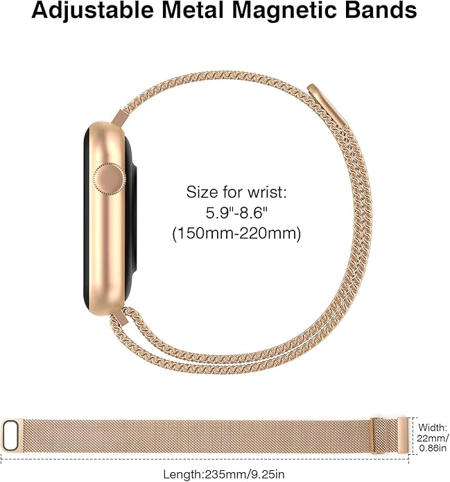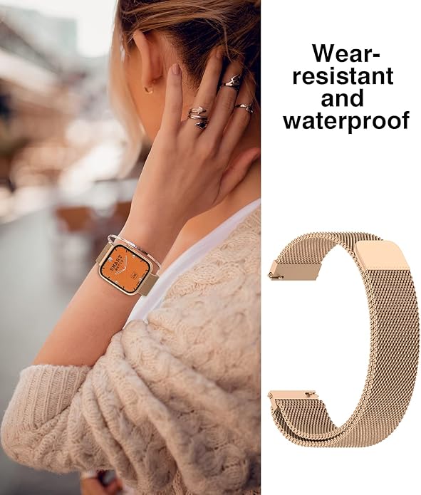 - 🎁【Quality materials】-Our metal strap is made of stainless steel Milanese mesh, about 1.6 mm thick, 360° turnable and soft to fit your skin. The thin, solid mesh, abrasion-resistant and breathable stainless steel strap is both comfortable and high-end. The magnetic clasp has a strong iron inside to provide a strong clamping force.The metal mesh strap is lightweight and breathable, waterproof and sweatproof, making it more comfortable for you to wear.