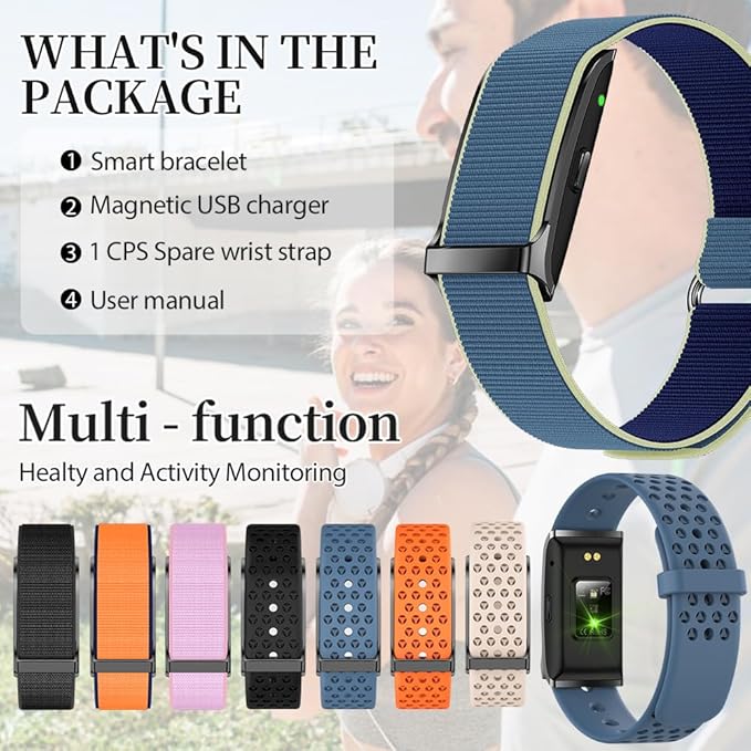 - Two Straps & Lifetime Free App: This smart fitness tracker comes with two interchangeable straps (nylon + silicone) and a waterproof magnetic charger. It also includes a rare lifetime-free app (iOS/Android) tailored to your health management needs. Customize settings and track your progress through the app, making it easy to kickstart your fitness journey