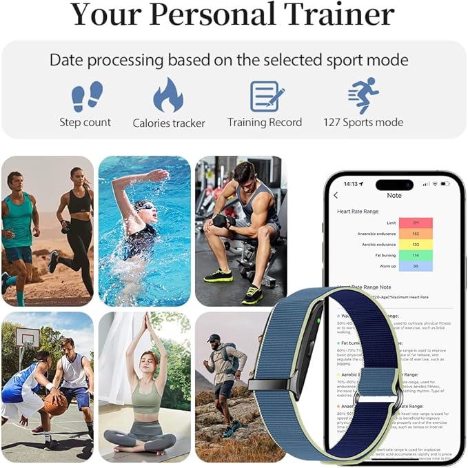 - 127 Sports Modes & Real-Time GPS Tracking: Choose from 127 sports modes, including rugby, soccer, baseball, basketball, golf, running, cycling, yoga, swimming, hiking, and more. Whether you're doing strength training, cardio at the gym, or outdoor activities like jogging and cycling, this tracker has you covered. The built-in GPS accurately displays your distance, speed, and calorie burn, giving you full control over your fitness data