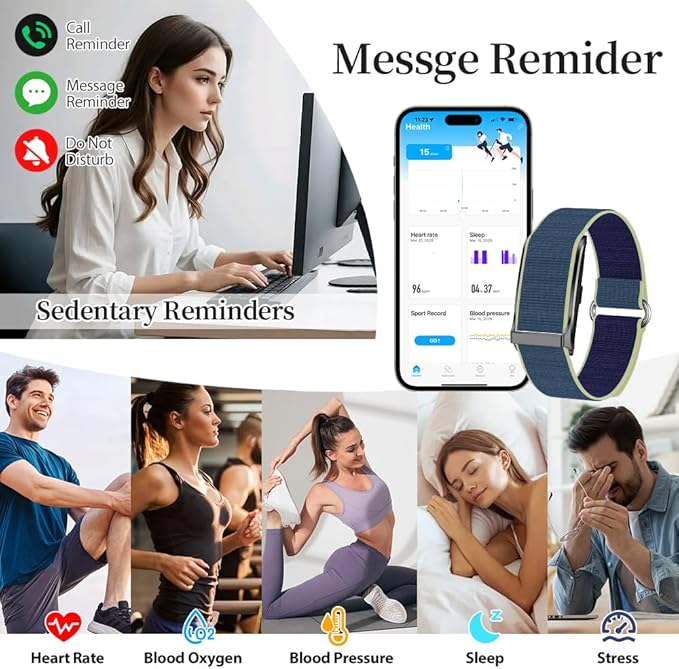 - The Latest Design on the Market: This wristband is equipped with advanced sensors that continuously and accurately monitor heart rate, blood pressure, blood oxygen saturation (SpO₂), respiratory rate, stress levels, resting heart rate, heart rate variability, women's menstrual cycle tracking, sleep quality, step counting, and daily activity tracking. It offers all the features you need, making it an ideal choice for fitness enthusiasts and outdoor adventurers