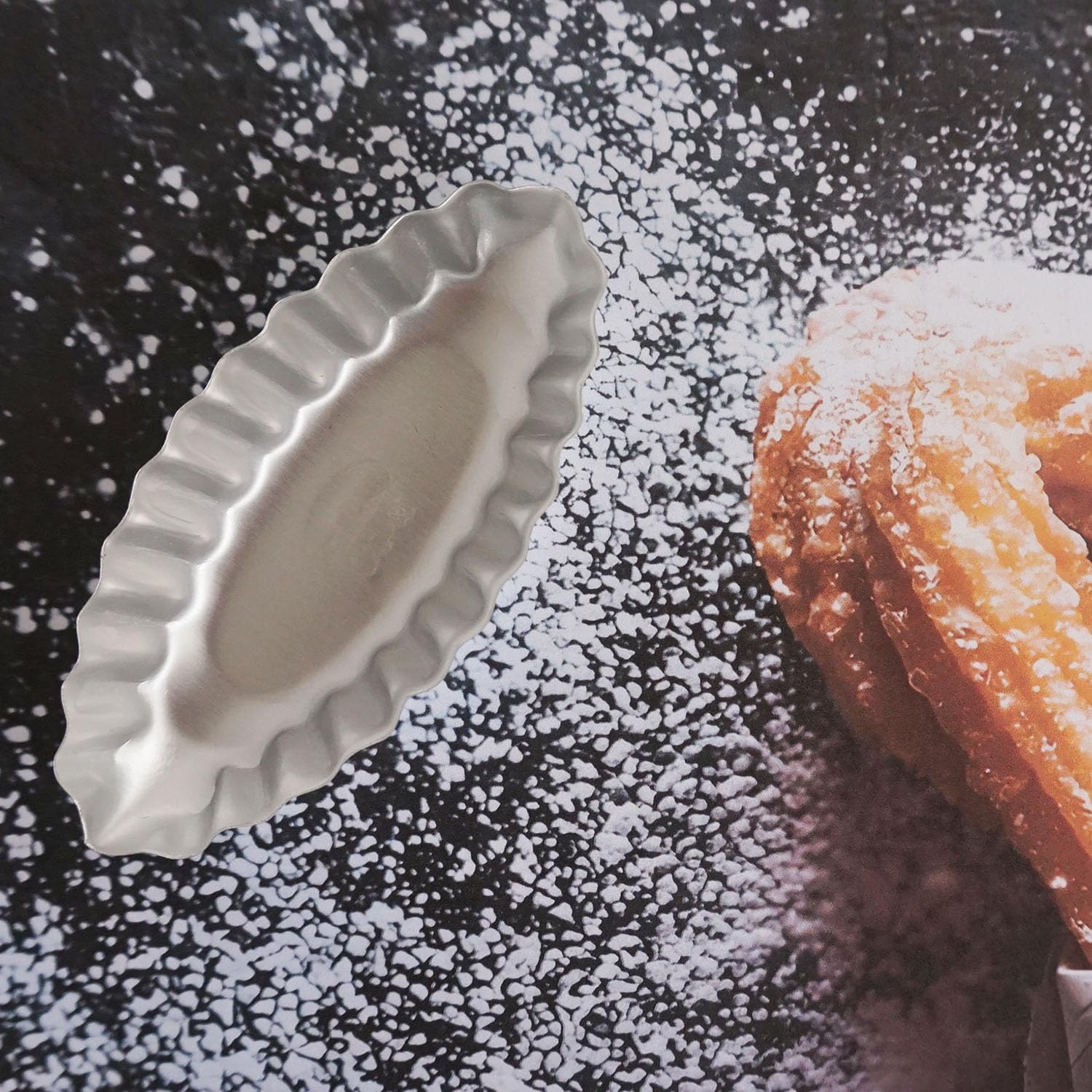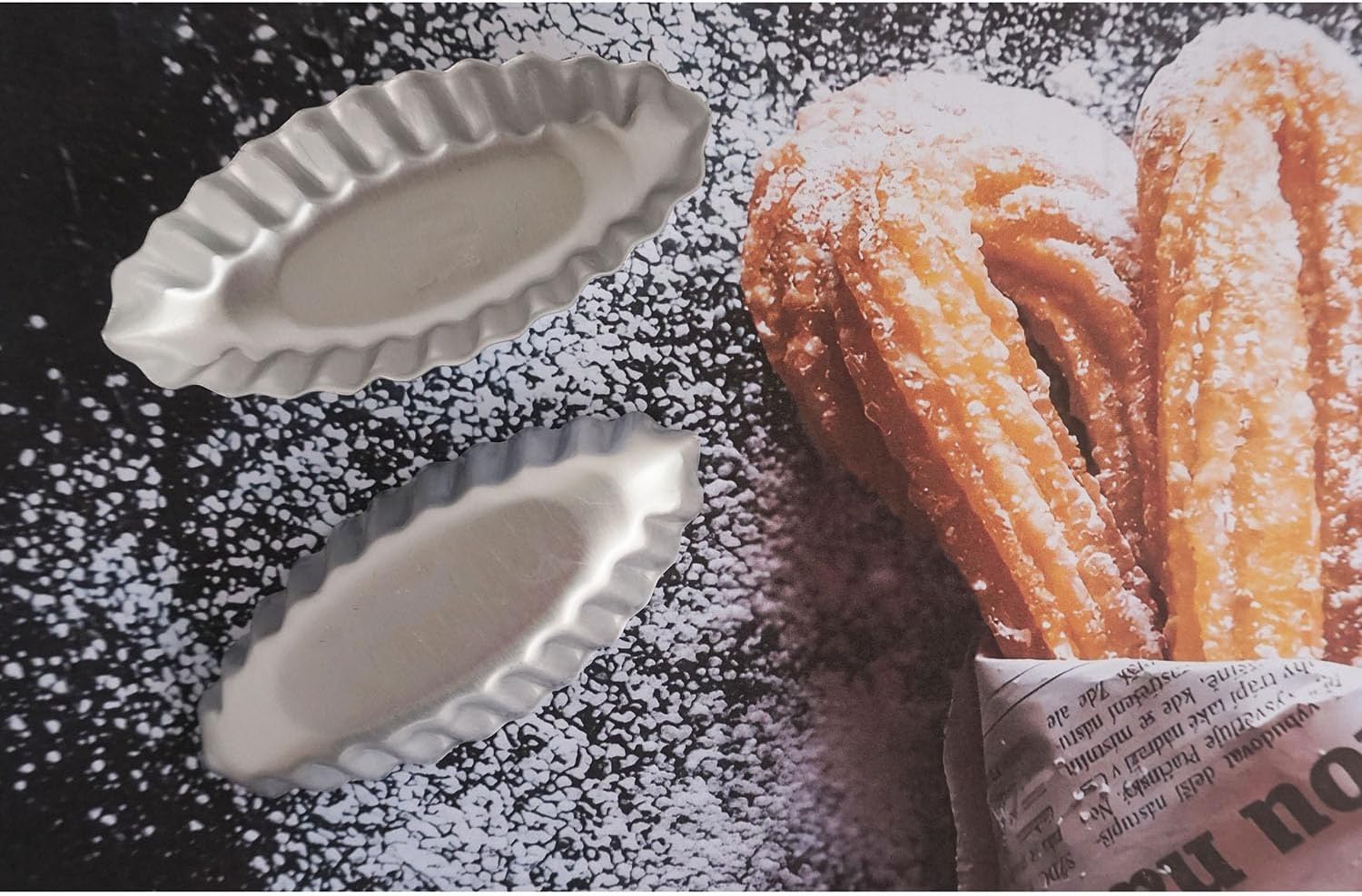 10PCS Aluminum Boat Tart Pan, Fluted Oval Tart Mold, Small Boat Shape Baking Mold, Wavy Tartlet Pie Pans, Pudding Molds Flower Edge Trays Specialty Design - Silver