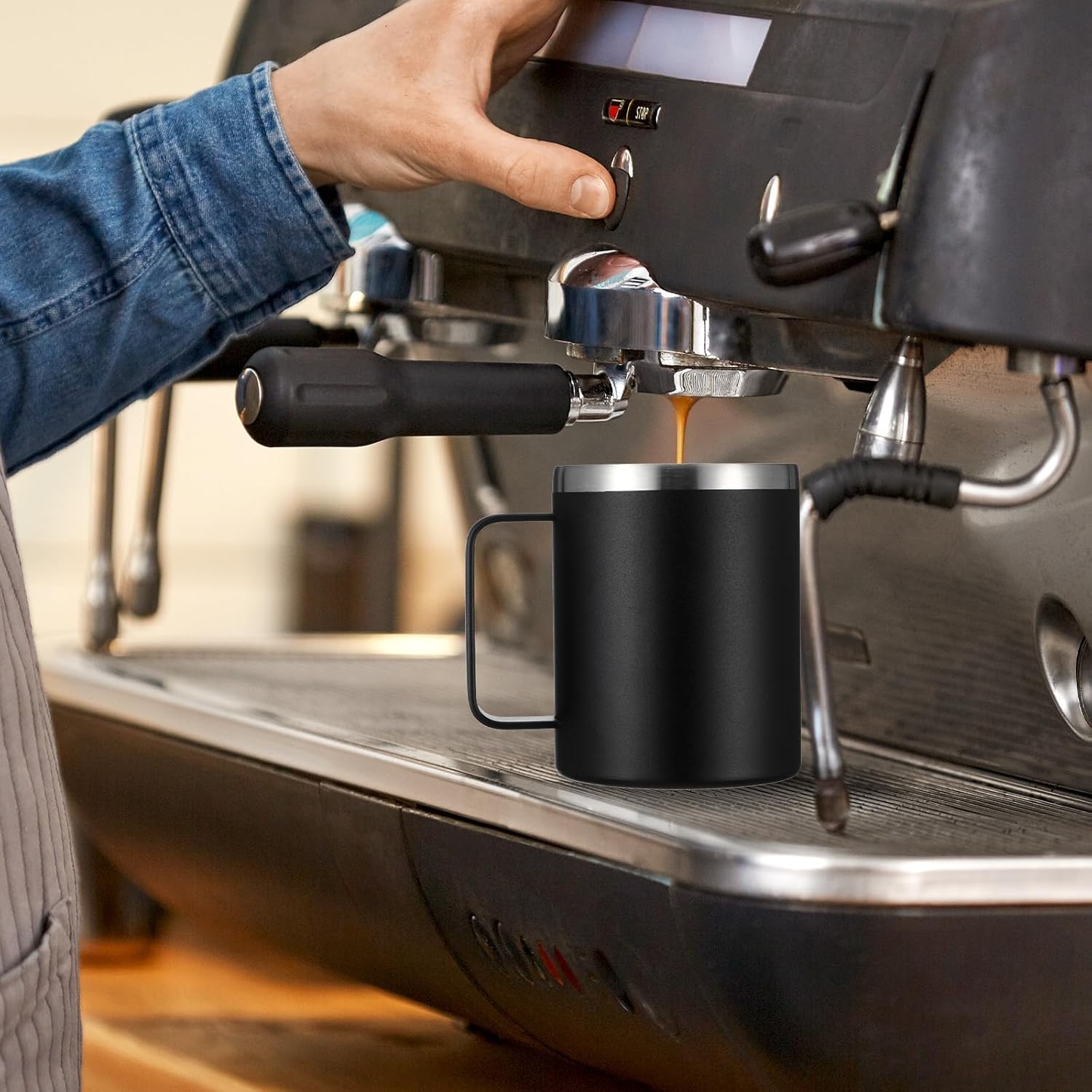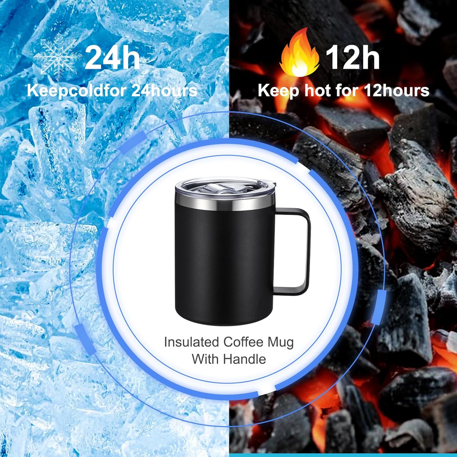 - Stainless Steel Coffee Mug: The 12oz coffee mug is ideal for home use, outdoor activities,camping, travel or work.Carry this travel coffee mug with you wherever you go
