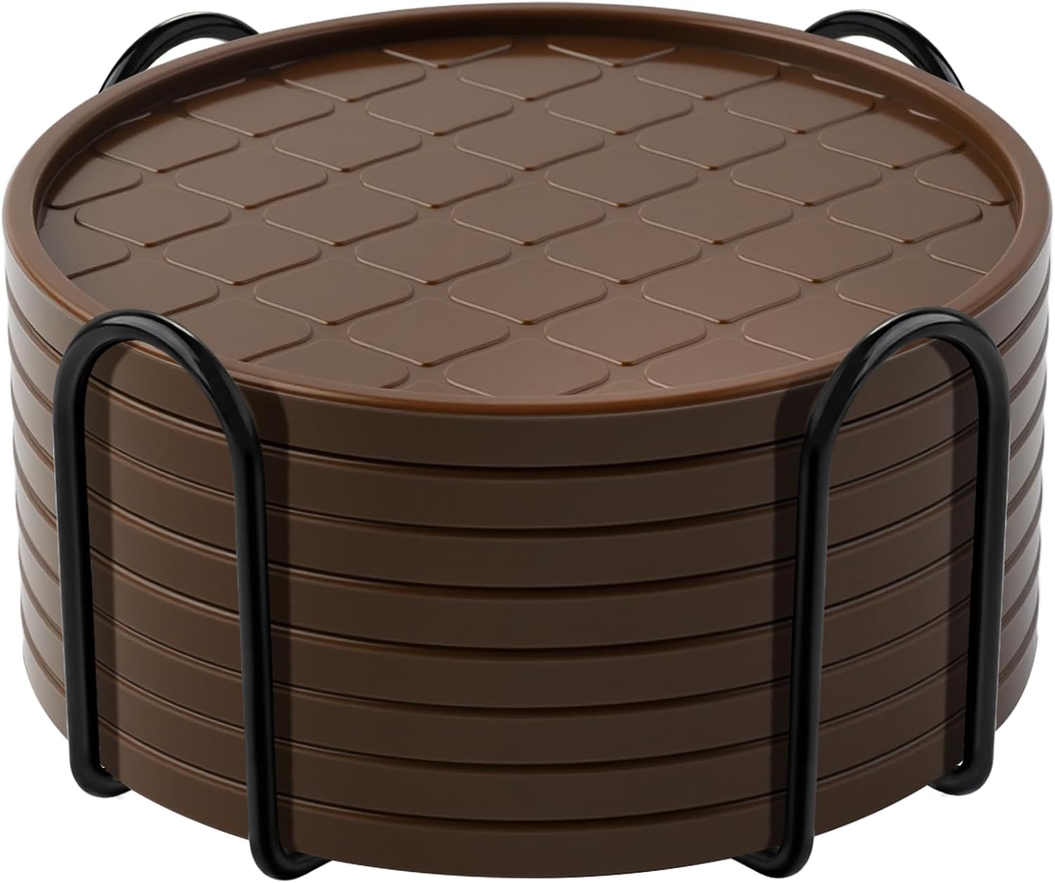 Coasters Set of 8,Hot or Cold Drink Coasters with Holder,Modern Style Coffee Table Coaster,Suitable for Kinds Cups Beer,Drink,Anti-Overflow Tabletop Protection (Coffee, 8pcs)