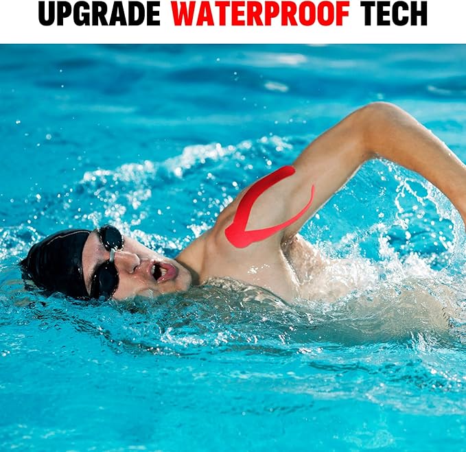 - 【Waterproof Kinetic Tape】We have upgraded the cotton material and adhesive of the kinetic tape, and adopted a unique water ripple design to make our muscle tape water resistant and sweat resistant. They can stick tightly to the skin all the time, even after multiple sweating and showering, the tape remains securely in place