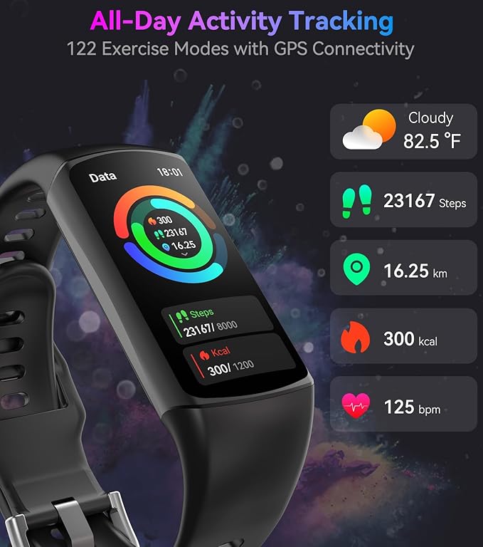 - 【120+ exercise modes & All-Day Activity Tracking】There are more than 120 exercise modes available in the activity trackers and smartwatches, covering almost all daily sports activities you can imagine, gives you new ways to train and advanced metrics for more information about your workout performance. The all-day activity tracking feature monitors your steps, distance, and calories burned all the day, so you can see how much progress you've made towards your fitness goals.