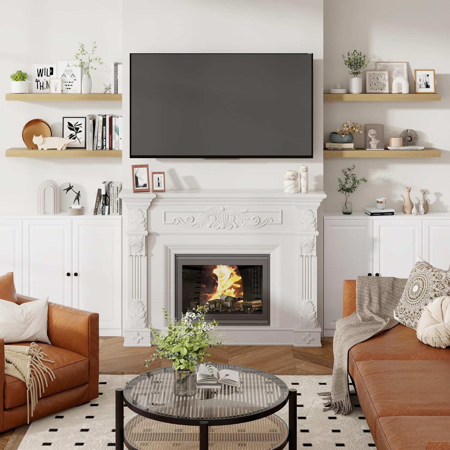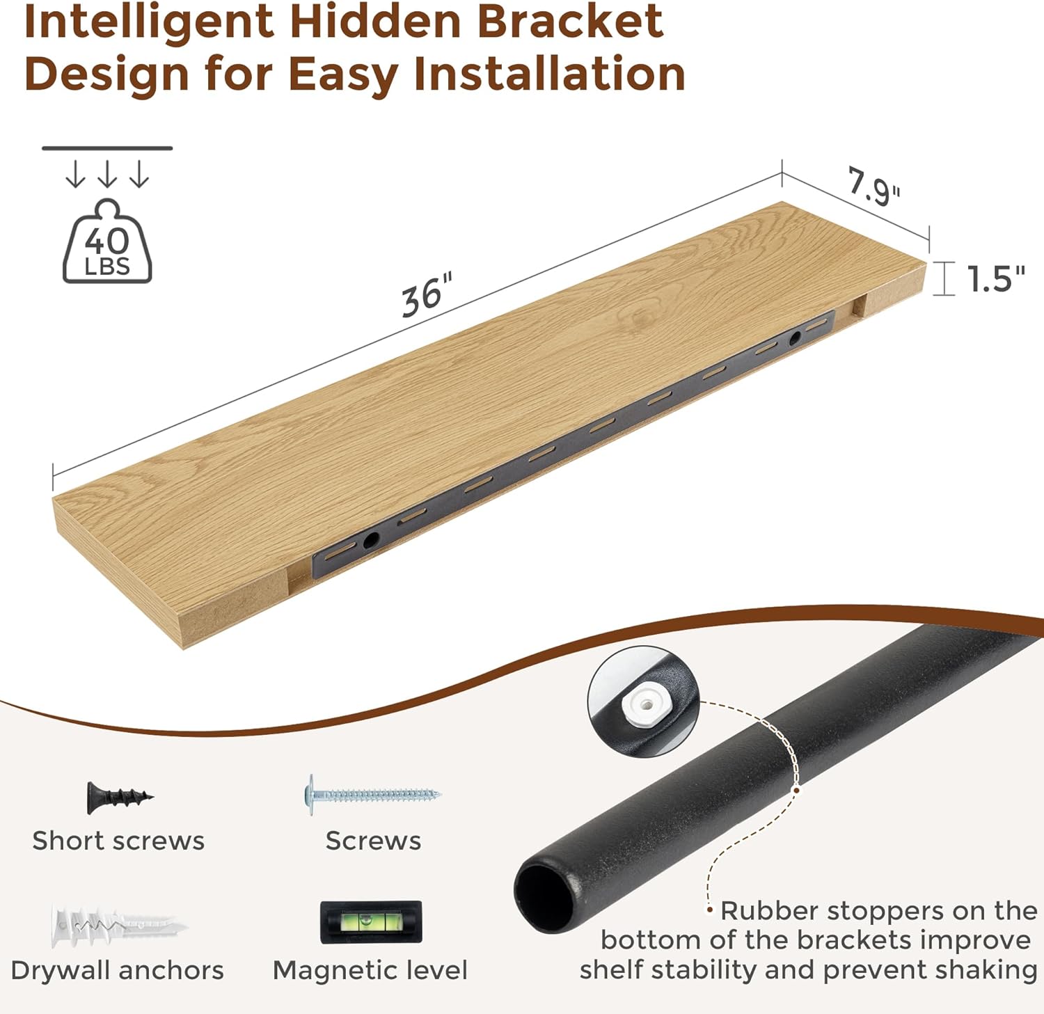 - 【Sturdy Support】Make the most of your wall space with our 36 x 8 inch oak floating shelves for wall for room wall. At 1.5 inches thick, they offer sturdy support for your plants and decorative pieces. Each shelf can hold up to 30 lbs, ensuring your items never sag or fall.