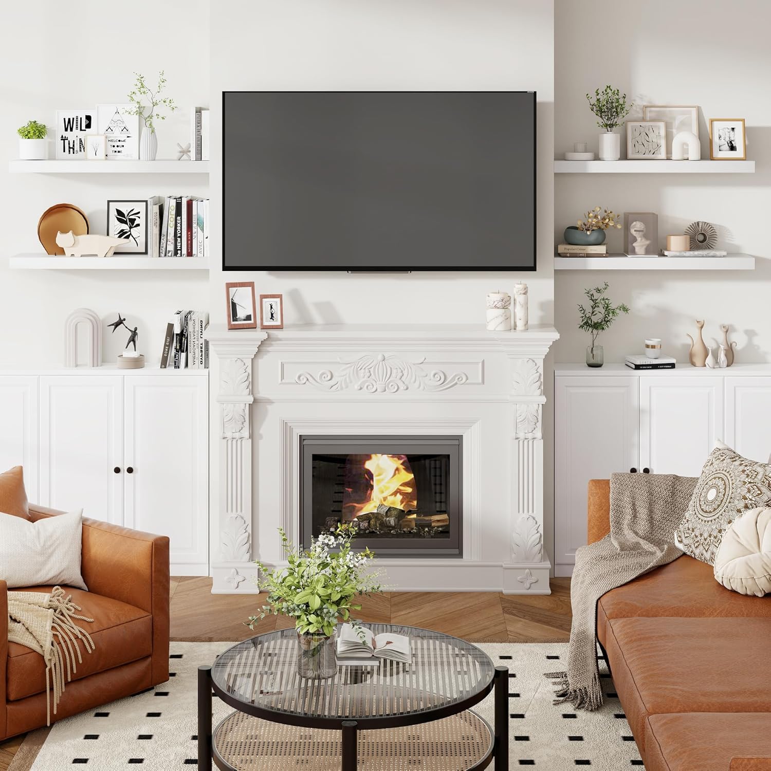 - 【Sturdy Support】Make the most of your wall space with our 36 x 8 inch white floating shelves for wall for room wall. At 1.5 inches thick, they offer sturdy support for your plants and decorative pieces. Each shelf can hold up to 30 lbs, ensuring your items never sag or fall.