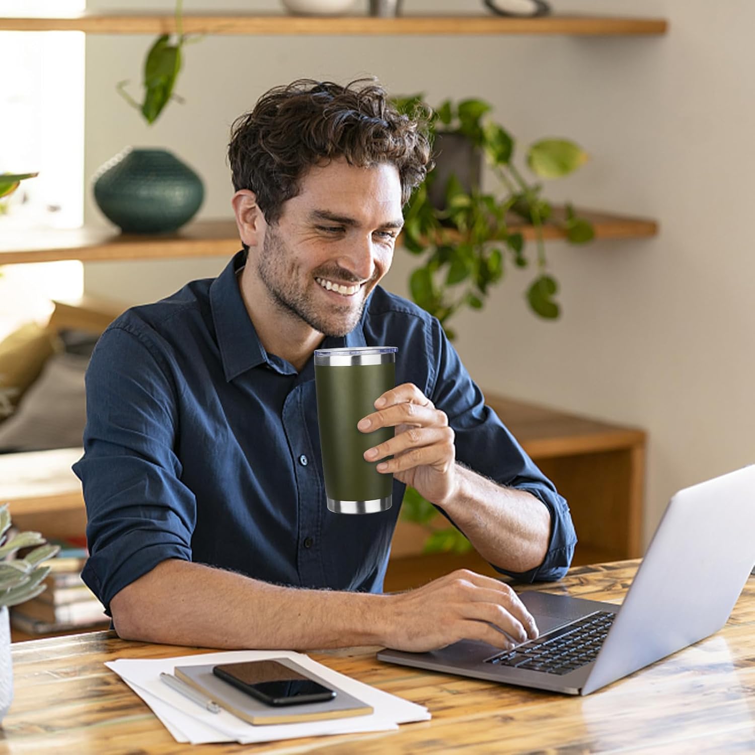 20oz Tumbler Bulk with Lid and Straw, Stainless Steel Double Wall Vacuum Insulated Travel Mug, Powder Coated Coffee Cups for Hot and Cold Drinks,Funny Gifts for Women Men(Navy Green,6)