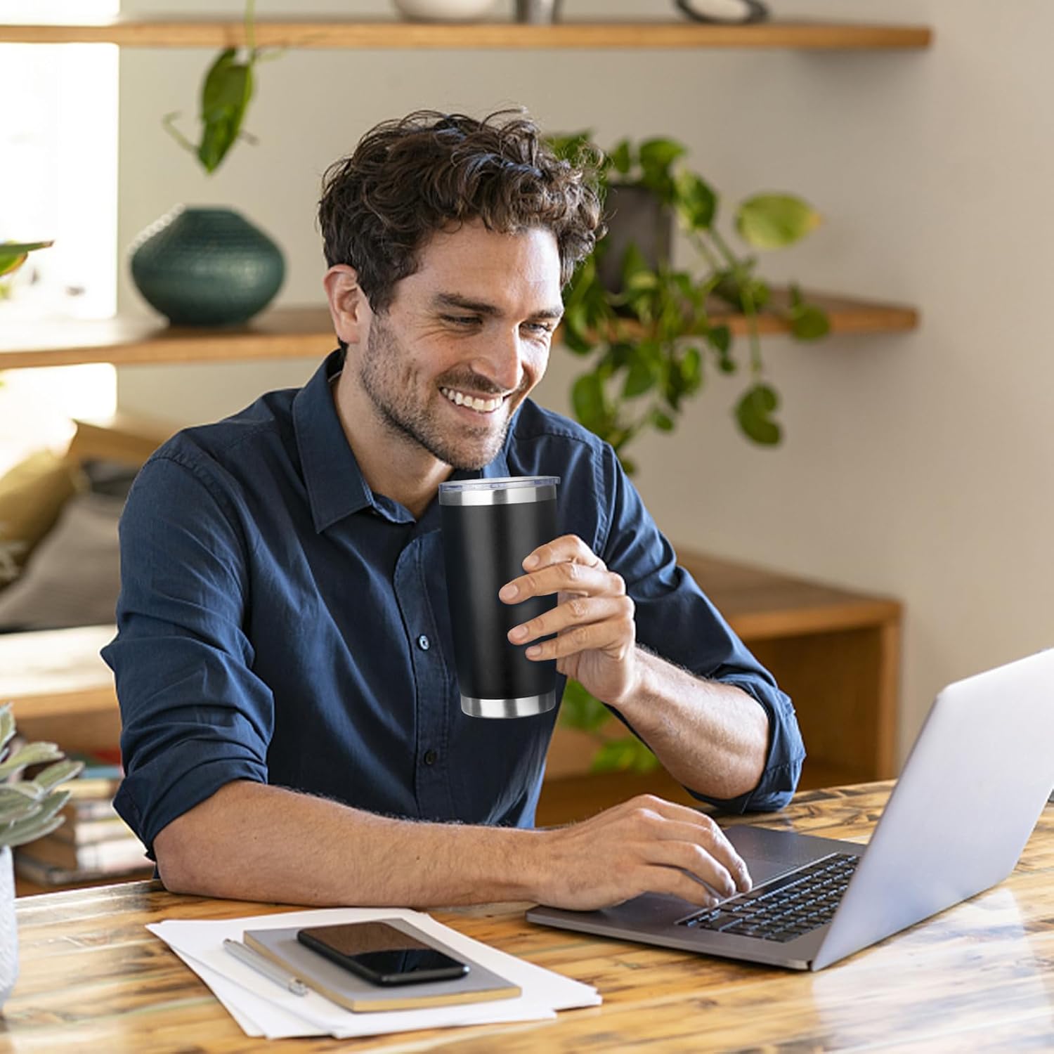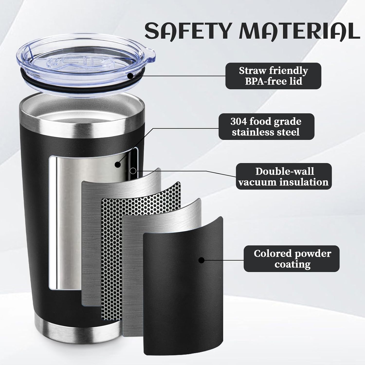 20oz Tumbler Bulk with Lid and Straw, Stainless Steel Double Wall Vacuum Insulated Travel Mug, Powder Coated Coffee Cups for Hot and Cold Drinks,Funny Gifts for Women Men(Black,1)