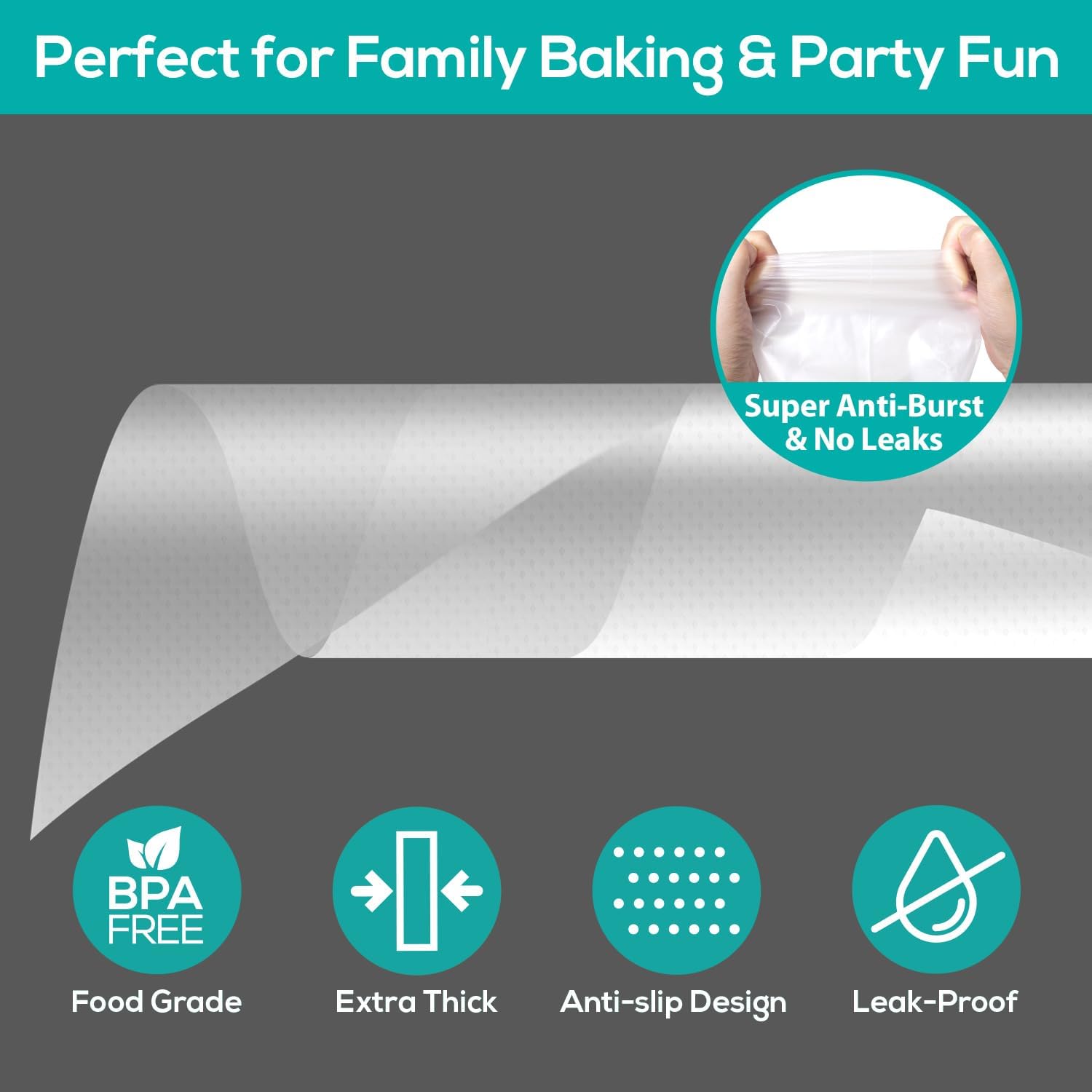 - Food-grade Material: Our piping bags are crafted from food-grade safe materials. They’ve undergone professional testing, contain no BPA, are non-toxic, and have no odd odors. You can use them with confidence for making your cakes and desserts.