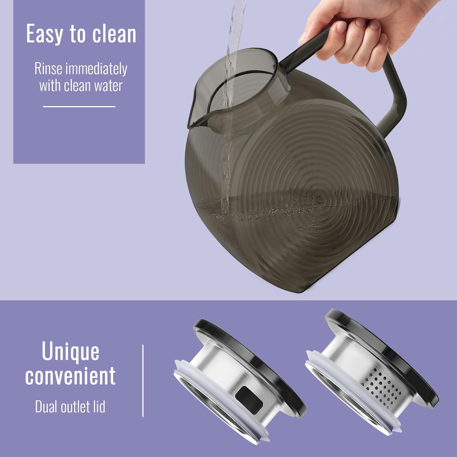 - Perfectly Sized Capacity: With a generous 2.3Liter or 78oz capacity glass pitchers with handle and lid, it is ideal for serving homemade iced tea, juice, sangria, cocktails, coffee, or milk. Whether you're hosting a party, enjoying a picnic, or need a stylish glass water pitcher for your bar, the leak-proof glass jug has got you covered.