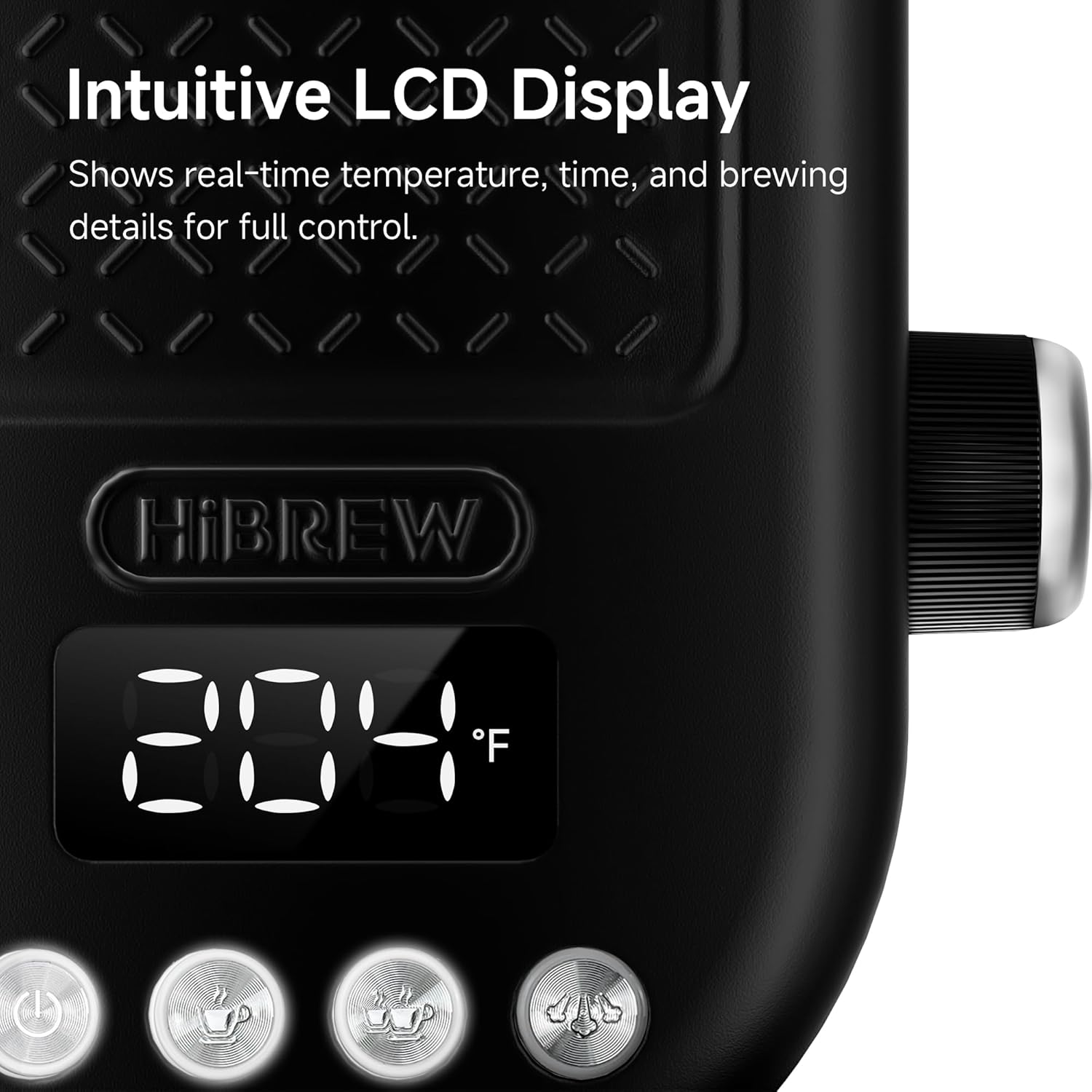 HIBREW H10B - 51mm Espresso Machine - Temperature & Cup Volume Adjustable at will - With Intelligent Display Screen & Pressure Gauge - Stainless Steel Body (Black)