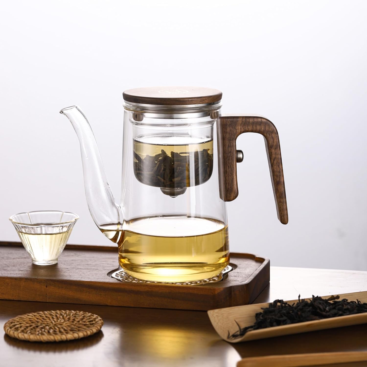- HIGH QUALITY MATERIALS: The Enchanti glass teapot is made of stronger high borosilicate glass and features a premium walnut handle and lid, the teapot comes with a dispenser that can be used for loose teas, floral teas and herbal blends.