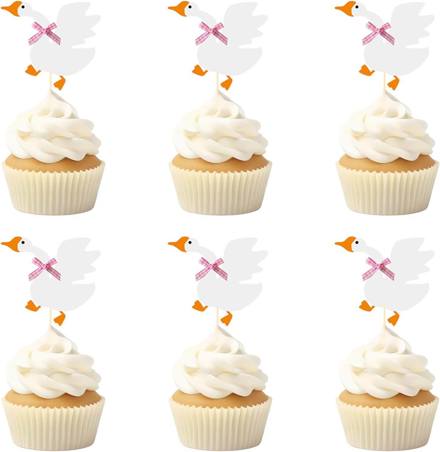 - 🎉【Adorable Silly Goose Cupcake Toppers】these adorable silly goose cupcake toppers Add a fun and quirky touch to your dessert table! Featuring cute goose shapes with pink bows, they’re the perfect goose party decor for one silly goose birthday parties, baby showers, or farmyard-themed events. A charming way to elevate your goose cake topper decorations.