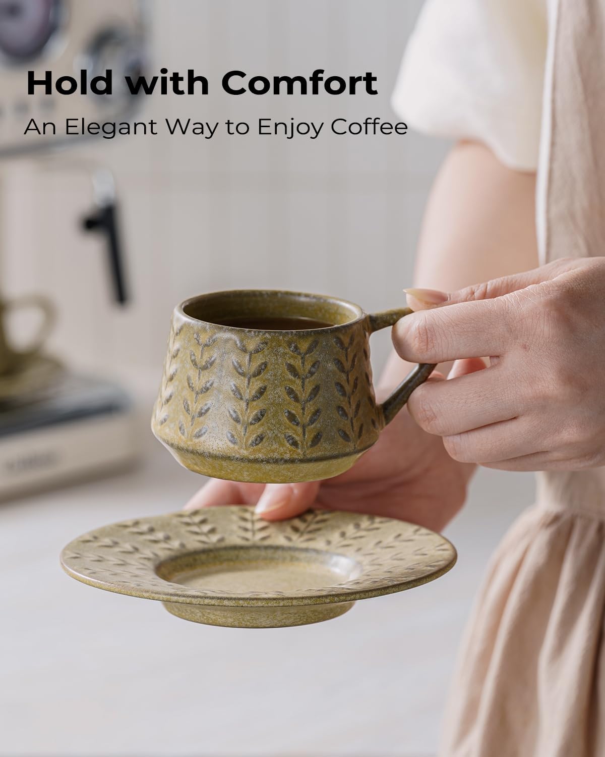 - Enhances the Coffee Experience: The 4 oz espresso mugs deliver rich, concentrated flavor in every sip, capturing the true essence of espresso. Saucers double as snack plates, and cups fit securely with minimal slip or shift when moved