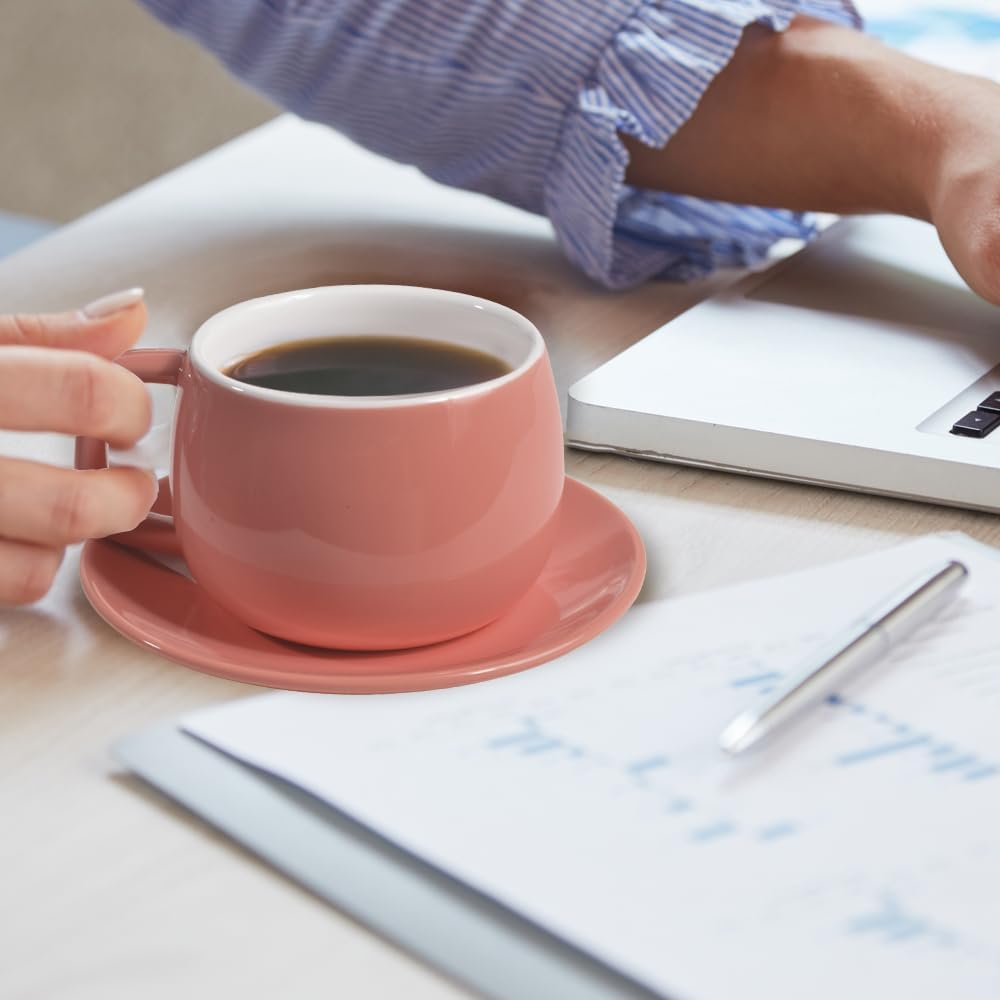 Porcelain Coffee Cup with Saucer 270ml/9oz, Minimalist Design, Perfect for Latte, Cappuccino, and Tea, Pink