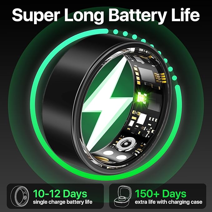 - Activity & Fitness Tracking:Automatically monitor your steps, calories burned, and distance with this feature-rich device. With multiple sport modes (running, cycling, yoga, and more), it serves as the ideal fitness tracker ring. Recognized among fitness rings for men women and smart rings for women men, it provides comprehensive exercise insights for an active lifestyle