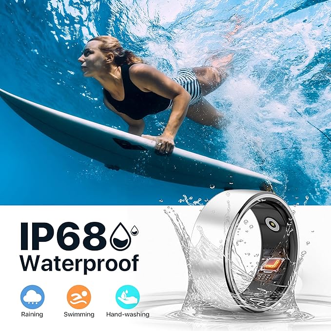 • Activity & Fitness Tracking:Automatically monitor your steps, calories burned, and distance with this feature-rich device. With multiple sport modes (running, cycling, yoga, and more), it serves as the ideal fitness tracker ring. Recognized among fitness rings for men women and smart rings for women men, it provides comprehensive exercise insights for an active lifestyle