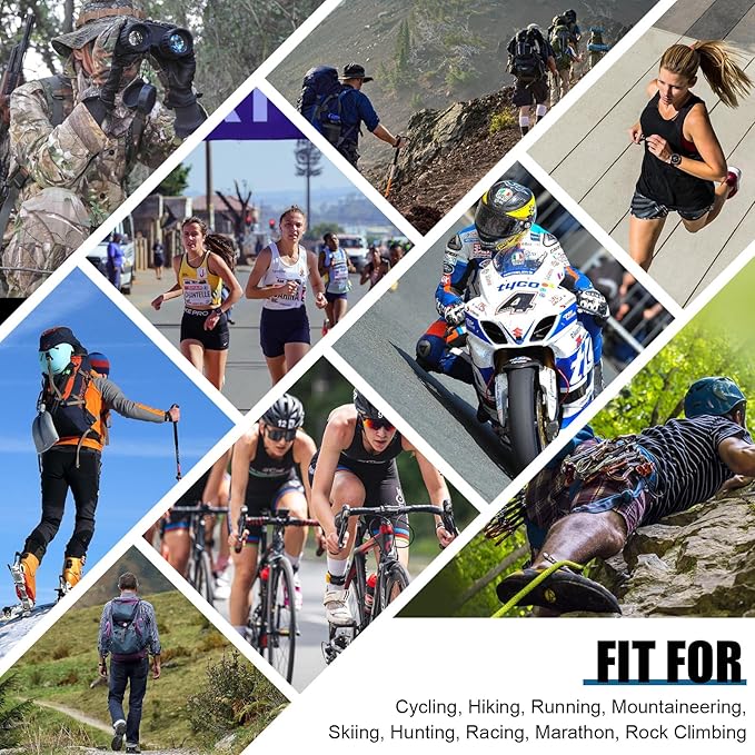 - Sport : Cycling, Hiking, Running, Skiing, Mountain Climbing, Hunting, Racing, Marathons, Rock Climbing