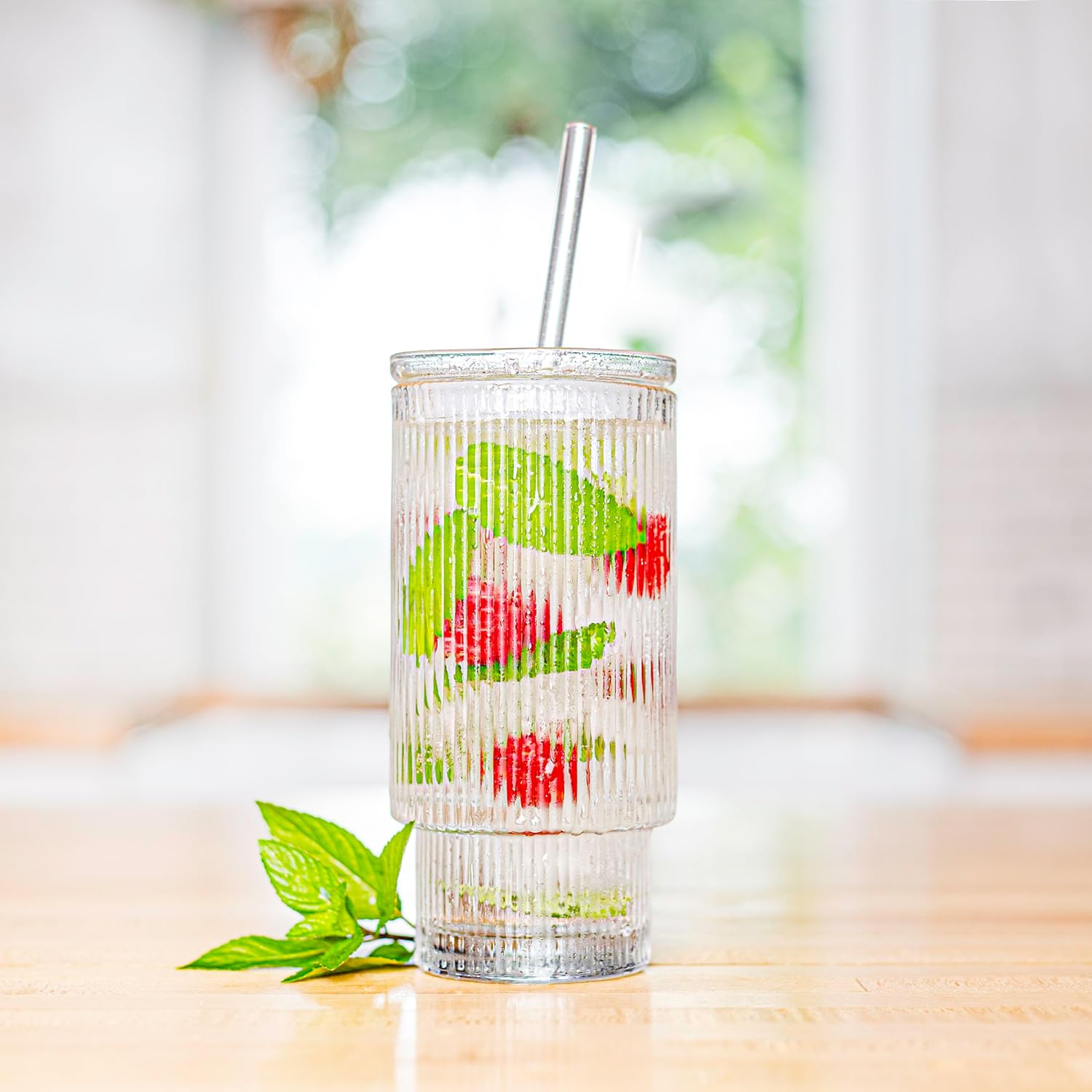 All Glass Iced Coffee Cup with Lid and Straw (16oz striped)