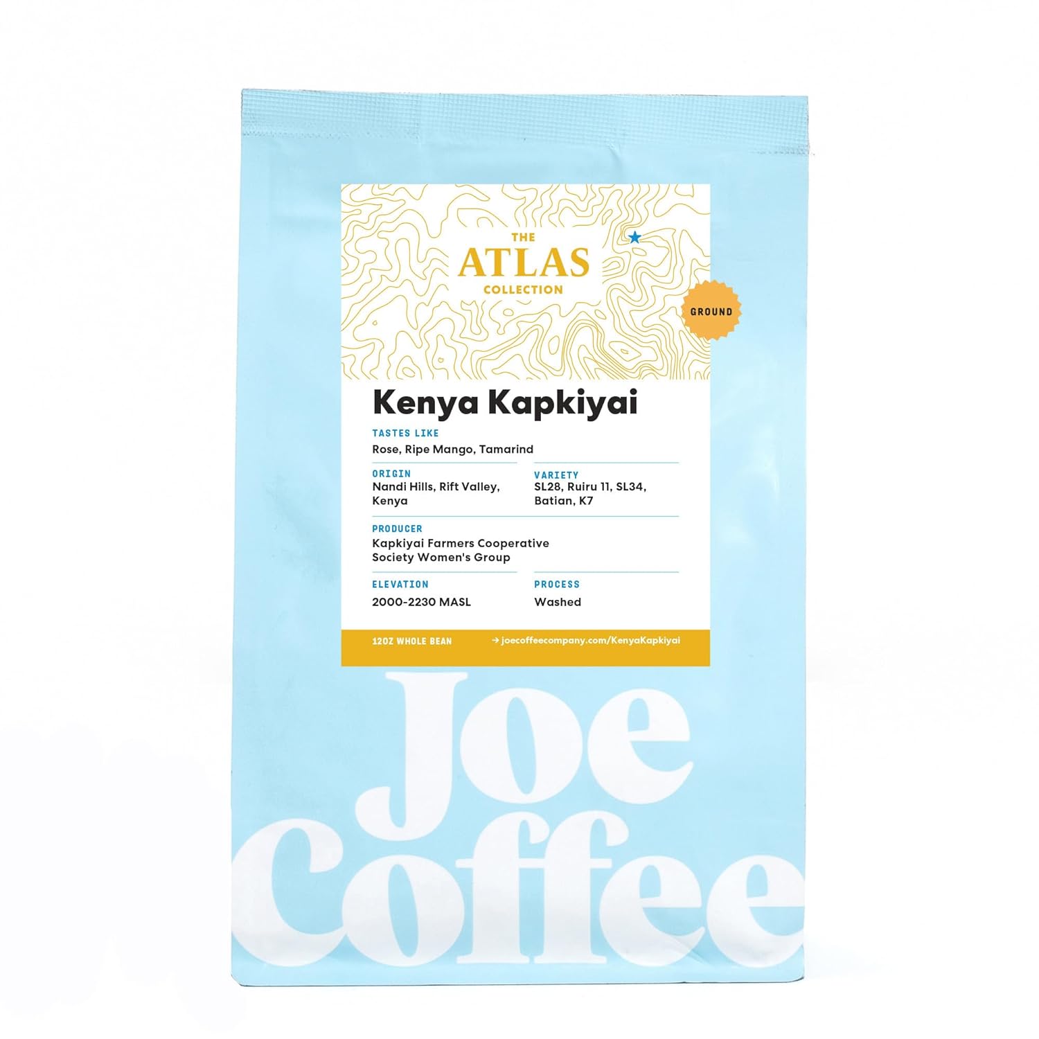 Joe Coffee Company - Kenya Kapkiyai Ground Specialty Coffee, 12 oz Bag | Women-Produced, NYC Roaster, Rainforest Alliance Certified, Kosher, Climate-Friendly