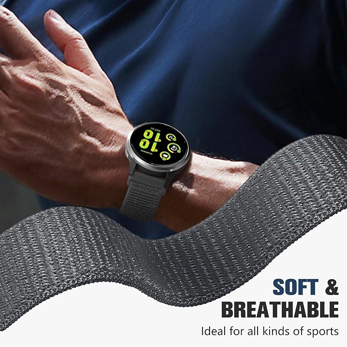 18mm 20mm 22mm Hook and Loop Watch Band Compatible with Garmin Vivoactive 5/ Vivoactive 6/ Vivoactive 3, Soft Nylon Breathable Sport Strap for Venu 2S/ Venu3S/ Forerunner 265s,Venu 3/ Venu 2 Men Women