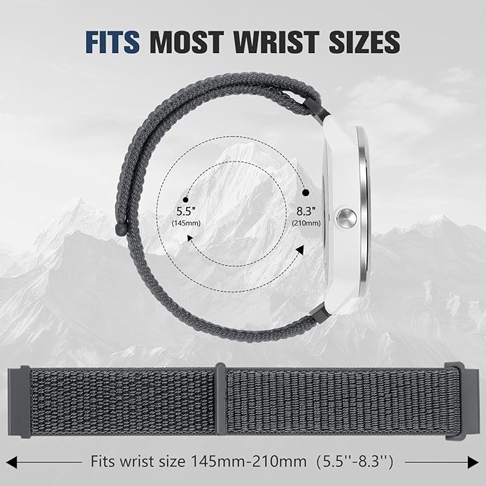 - Ultra-Comfort Breathable Nylon Strap: Engineered with premium moisture-wicking nylon, this featherlight replacement sport 20mm watch band contours to your wrist with cloud-like softness. Its advanced airflow weave technology actively combats sweat accumulation, maintaining all-day freshness whether you're crushing workouts or navigating daily tasks