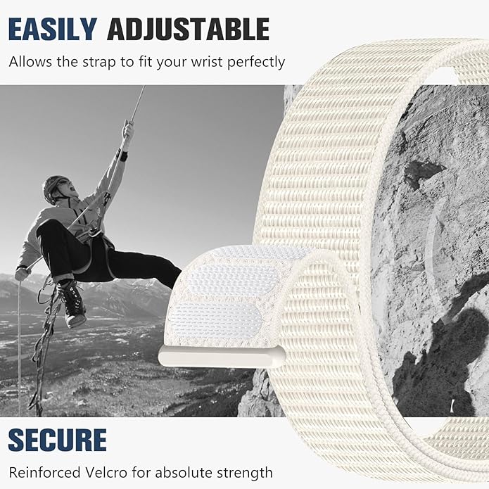 • Ultra-Secure Adjustable Fit: Say goodbye to slipping watch bands! Our Vel-cro closure provides a fully customizable fit (5.5"–8.3" wrist size) with micro-adjustability for the perfect snugness. The reinforced stitching and high-grip hook-and-loop design ensure your smartwatch stays firmly in place, whether you're running, lifting weights, or swimming. No more readjusting mid-workout—this strap locks securely while remaining easy to reposition