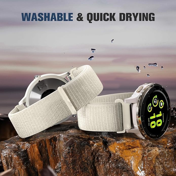 • Ultra-Comfort Breathable Nylon Strap: Engineered with premium moisture-wicking nylon, this featherlight replacement sport 20mm watch band contours to your wrist with cloud-like softness. Its advanced airflow weave technology actively combats sweat accumulation, maintaining all-day freshness whether you're crushing workouts or navigating daily tasks