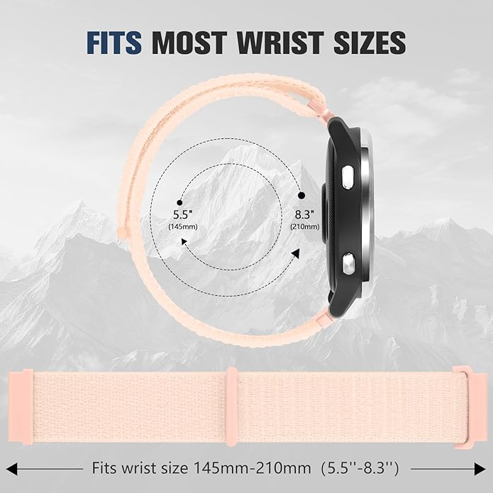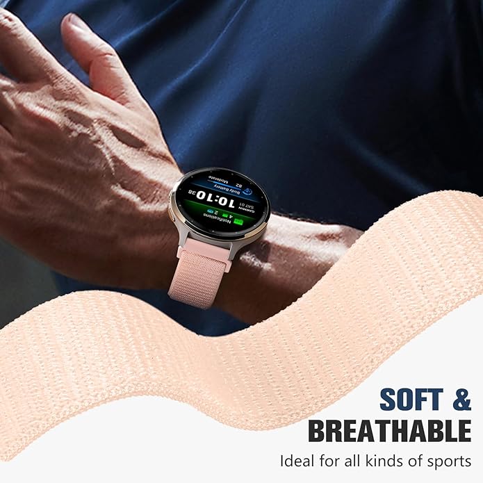 18mm 20mm 22mm Hook and Loop Watch Band Compatible with Garmin Vivoactive 5/ Vivoactive 6/ Vivoactive 3, Soft Nylon Breathable Sport Strap for Venu 2S/ Venu3S/ Forerunner 265s,Venu 3/ Venu 2 Men Women