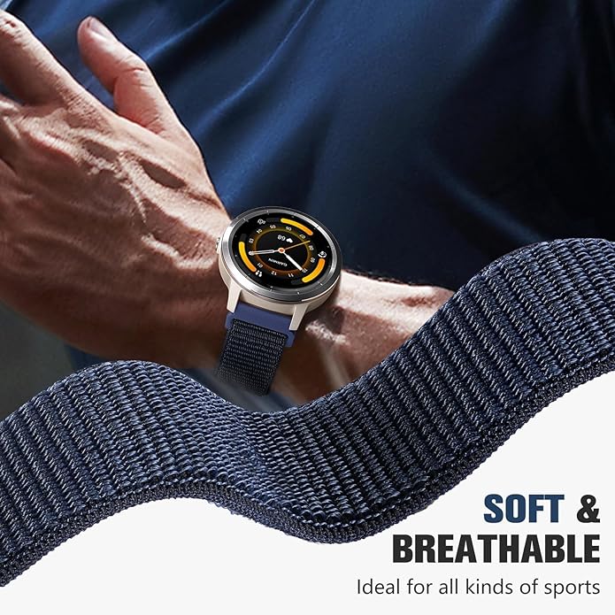 18mm 20mm 22mm Hook and Loop Watch Band Compatible with Garmin Vivoactive 5/ Vivoactive 6/ Vivoactive 3, Soft Nylon Breathable Sport Strap for Venu 2S/ Venu3S/ Forerunner 265s,Venu 3/ Venu 2 Men Women