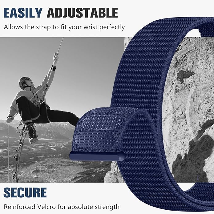 • Ultra-Secure Adjustable Fit: Say goodbye to slipping watch bands! Our Vel-cro closure provides a fully customizable fit (5.5"–8.3" wrist size) with micro-adjustability for the perfect snugness. The reinforced stitching and high-grip hook-and-loop design ensure your smartwatch stays firmly in place, whether you're running, lifting weights, or swimming. No more readjusting mid-workout—this strap locks securely while remaining easy to reposition