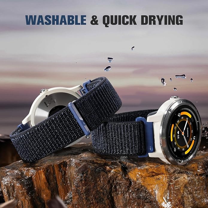 • Ultra-Comfort Breathable Nylon Strap: Engineered with premium moisture-wicking nylon, this featherlight replacement sport 22mm watch band contours to your wrist with cloud-like softness. Its advanced airflow weave technology actively combats sweat accumulation, maintaining all-day freshness whether you're crushing workouts or navigating daily tasks