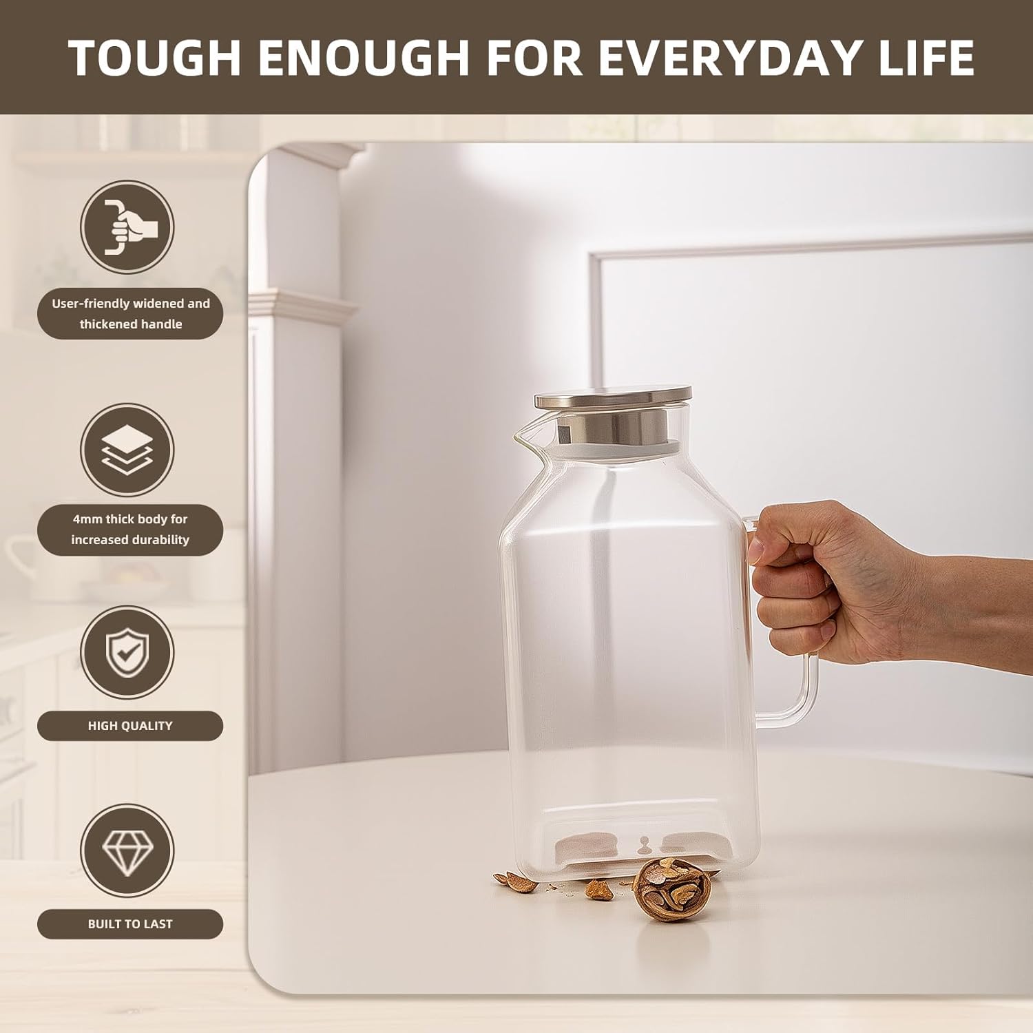Glass Pitcher, 3.6L Glass Water Pitcher with Tight Stainless Steel Lid, Heat Resistant Borosilicate Glass Carafe, Temperature Safe (MG10)