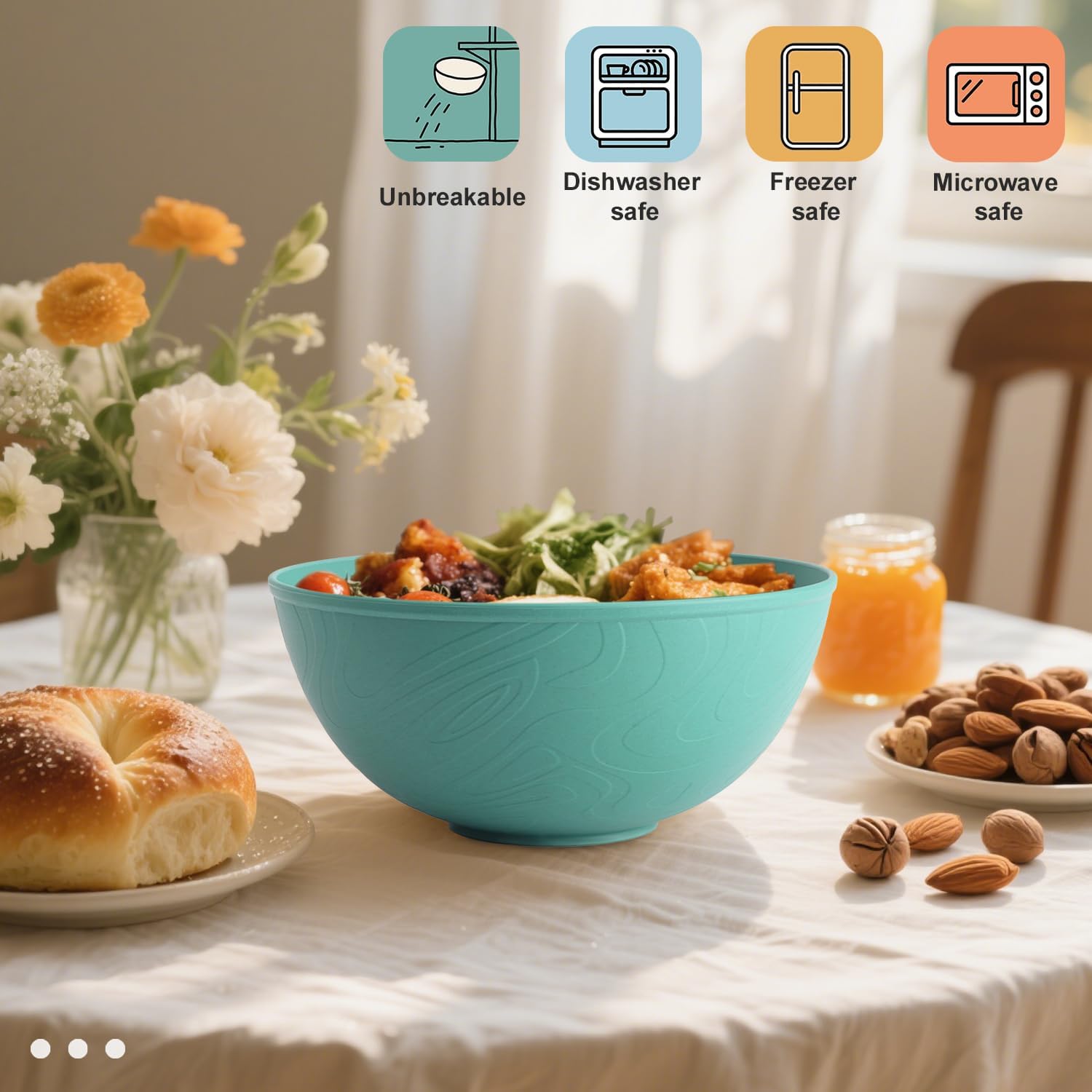 - ใ๐๐น๐๐ฒ๐ฟ๐ป๐ฎ๐๐ถ๐๐ฒ ๐๐ผ ๐ฃ๐น๐ฎ๐๐๐ถ๐ฐใ- Wrova 40oz salad bowls are constructed with organic wheat straw fiber and food-grade PP, 100% BPA free, non-toxic and environmentally friendly.