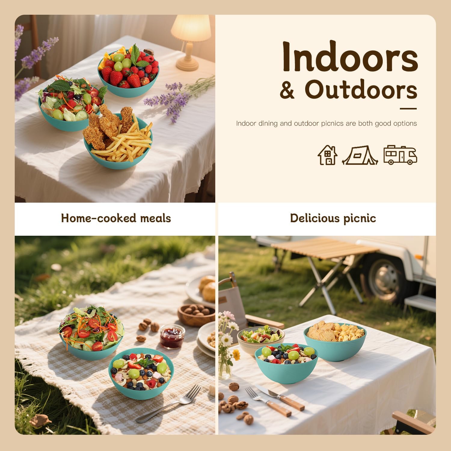 - ใ๐๐ป๐ฑ๐ผ๐ผ๐ฟ๐ & ๐ข๐๐๐ฑ๐ผ๐ผ๐ฟ๐ ๐จ๐๐ถ๐ป๐ดใ- These bowls are lightweight and unbreakable, featuring a smooth surface that makes cleaning effortless. Perfect for camping, RV trips, and outdoor adventures. Their unique flowing water pattern elevates them beyond traditional tableware, transforming everyday meals into aesthetic experiences at home.