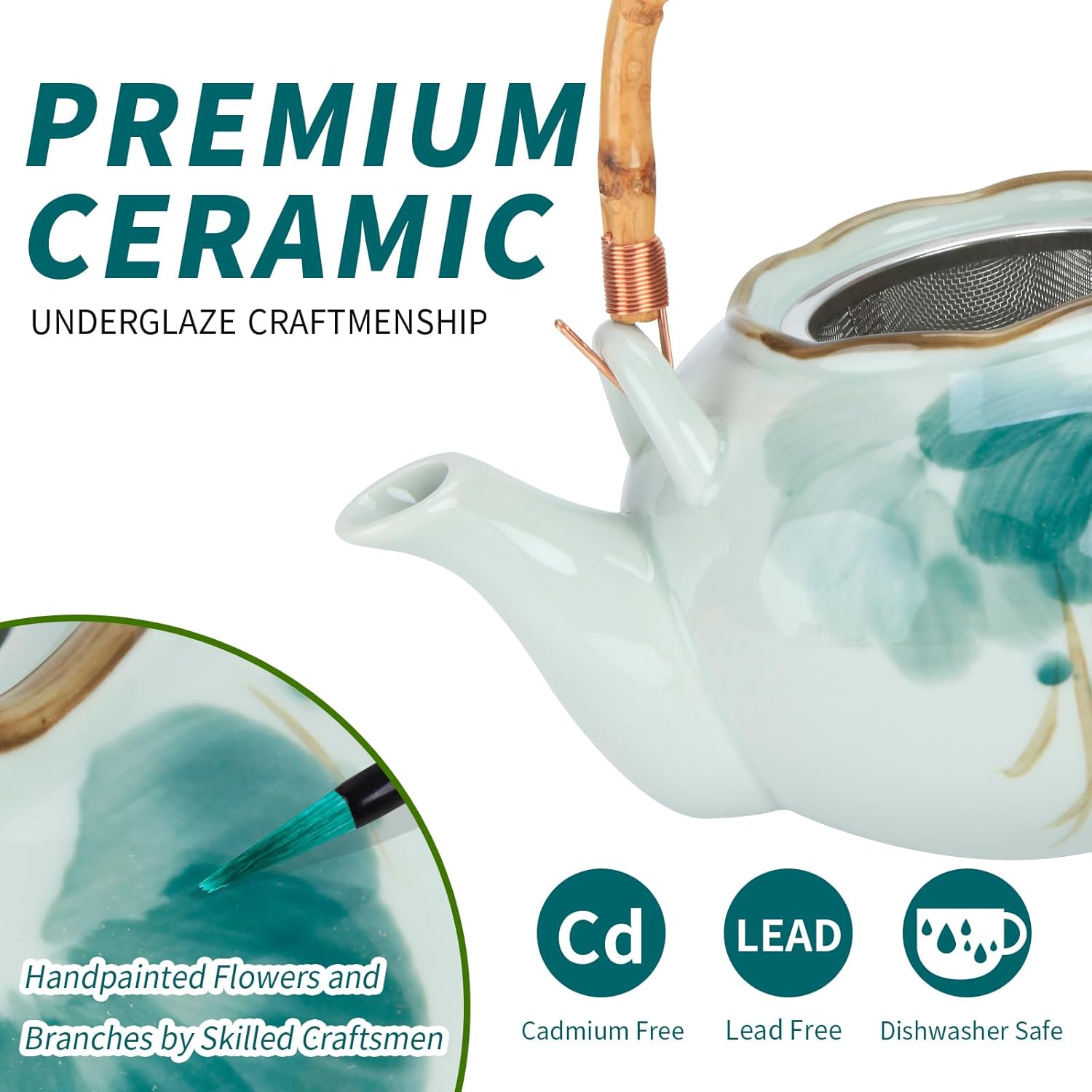 - Safe and Durable:Premium ceramic underglaze craftmenship is used when skilled craftsmen made this lovely teapot and tea cup set carefully.The japanese tea set is lead and cadmium-free,ensuring both health and durability, promising you a long-lasting enjoyment.