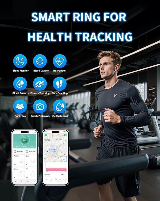 - 🎸【Real-time Health Monitoring】The smart ring tracker has the updated sensors, while it could monitor your HR/SpO2/BP/activity tracker within 24/7. Besides, it tracks daily real-time steps counting, distance, calories, giving you a organized approach to health management. Start Your Smart Health Journey.
